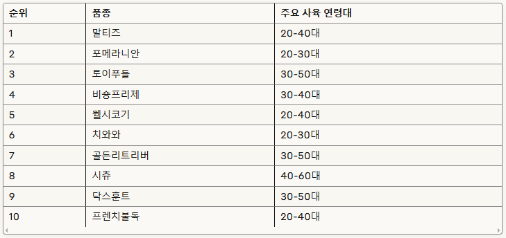 🐶한국에서 인기 있는 강아지 품종과 연령대