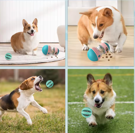 강아지가 공을 굴려 간식을 얻는 방식의 지능형 장난감으로, 식사 속도 조절과 지능 개발에 도움이 됩니다.