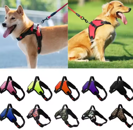 야간 산책 시 안전을 위한 반사 소재의 하네스로, 조절 가능한 스트랩으로 다양한 체형의 강아지에게 적합합니다.