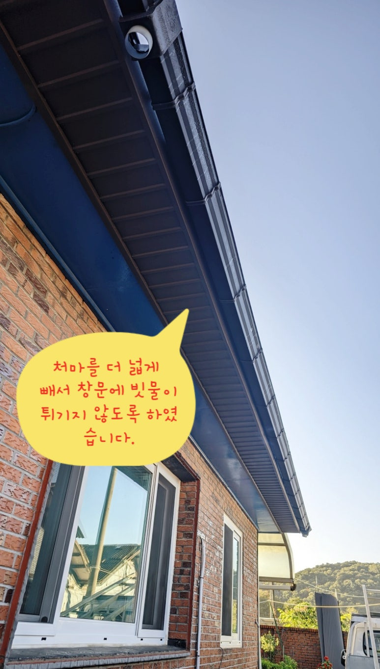 목재 작업 후 창문 위쪽 벽면이 너무 가까워서 창문에 빗물이 들어온다고 하여