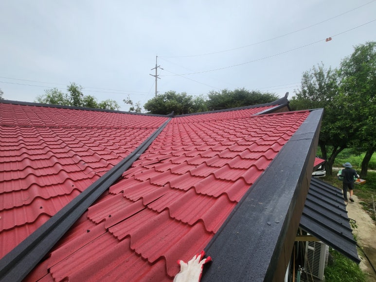 이러한 이유로 집주인은 기존 슬레이트 지붕을 철거하고, 내구성이 뛰어나고 깔끔한 디자인을 갖춘 칼라강판 지붕으로 교체하기로 결정했습니다.